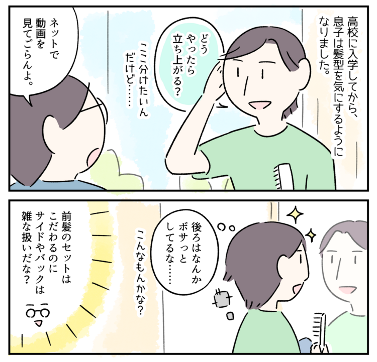 神経発達症がある息子のコウは現在高校生です。中学よりも校則が自由なこともあり、少しずつ髪型を気にするようになりました。毎朝熱心に前髪をセットし、「いってきまーす」と玄関を出ていく彼ですが、その後姿はボサついているのが少々気になります。