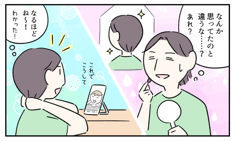 「それならネットで動画を見てごらんよ」と促すと、その後は自分で方法を調べ、いろいろ試すようになっていきました。“なりたい形”がハッキリしている分、「思ってたのと違うな」「もうちょっとこうしたいな」という感覚も生まれやすく、工夫や情報収集につながったのだと思います。