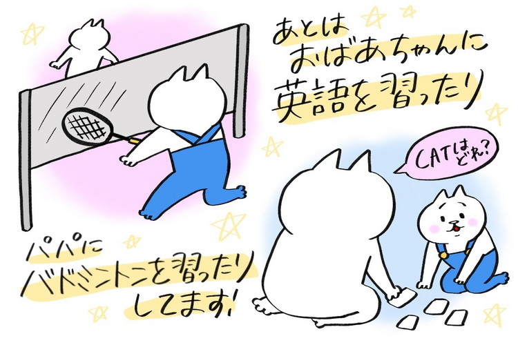 ほかにも、英語が得意な祖母に英会話を教えてもらったり、パパにバドミントンを教えてもらったりと、教室に通って習うことが難しい分、家族が協力して長男といろいろなことに挑戦しています。少しでもできることが増えて長男の自信につながってくれたらいいなと思います。