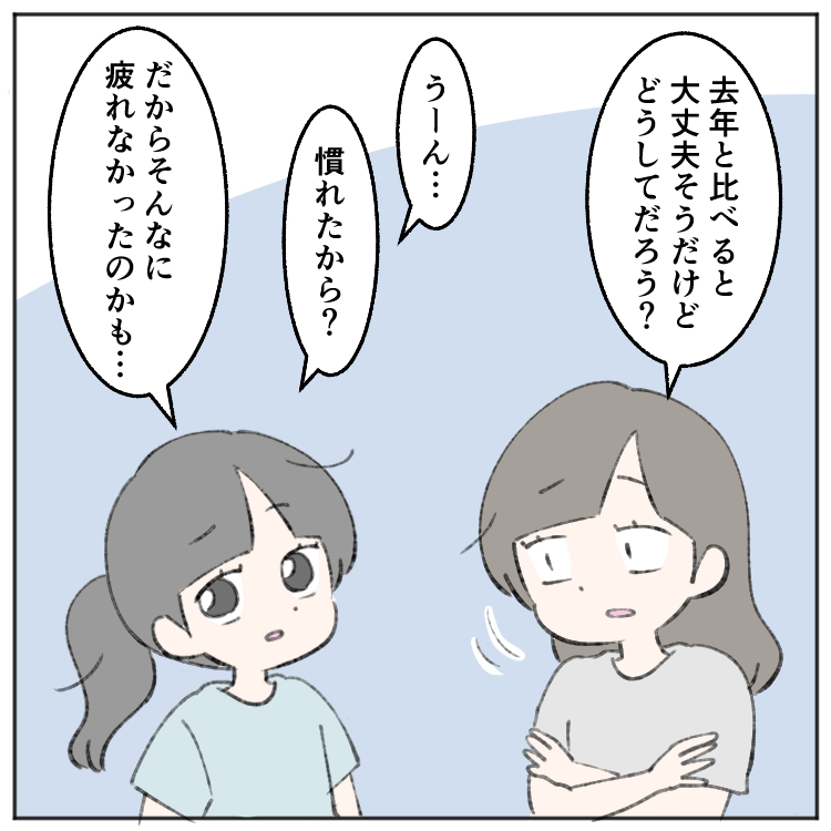 「慣れたから?去年も行ったから?だから去年みたいに疲れなかったのかも……」