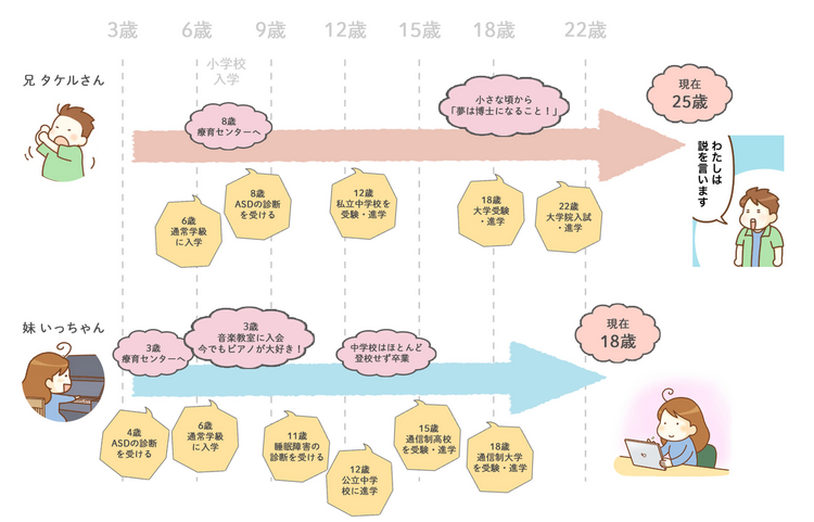 寺島ヒロさんの長男タケルさんは現在25歳(大学院に在学中)、長女いっちゃんは現在18歳(通信制大学に在学中)。二人ともASD(自閉スペクトラム症)と診断されています。きょうだいの成長について、これまでのコラムを振り返りながらご紹介します!