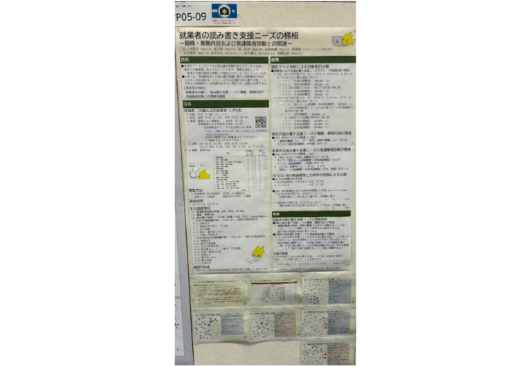 佐々木銀河先生(筑波大学)と株式会社Kaienの共同研究による発表「就業者の読み書き支援ニーズの様相 職種・業務内容および発達障害診断との関連」についてのポスター発表もありました。