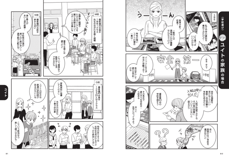 ――ご家族でシェアできる環境が素敵ですよね。お父さんの熱心さをプレッシャーに感じず、お父さんオリジナルの教材を活用しながら学ぶハルキくんのバランスが絶妙でした。ご家庭ごとにやり方がある、と考えながら読んでほしいですね。学校見学では、「特性のあるお子さんは通われていますか?」と直接確認をするお話もありました。学校ごとにサポート体制は違うと思いますが、親御さんがお子さんに合う学校を見極める上で、大切にした方がよい視点はありますか。
