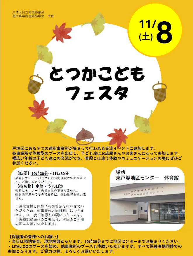 11月8日(土)に開催された『とつかこどもフェスタ』に子どもたちと一緒に参加をしてきました☺