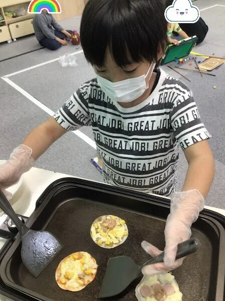 おやつ調理として【餃子の皮ピザ作り】に挑戦しました。