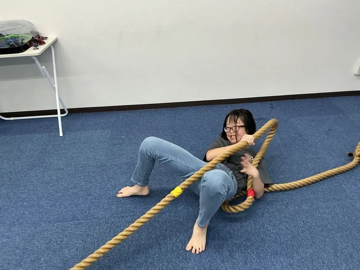 取り組みの難しい子は座って少ない人数で綱引きをしました!