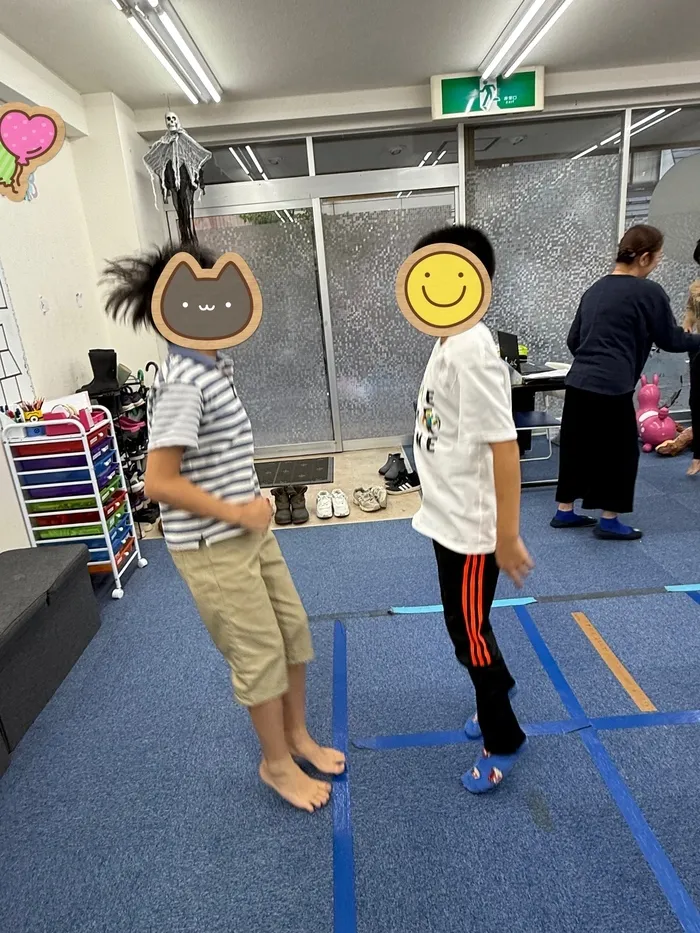 2人1組のペアになりリズムに合わせて左右にジャンプし、歌詞の「さ」の部分のみ前にジャンプします🦘
