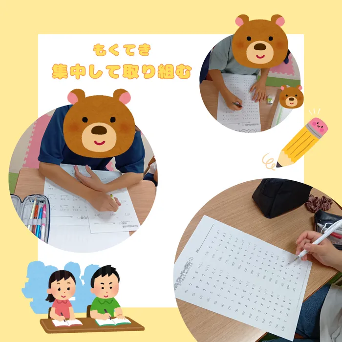 と、スタッフと一緒に解いたり、自分のペースで進めたり、子どもたちは日々頑張って学習に取り組んでいます🌟