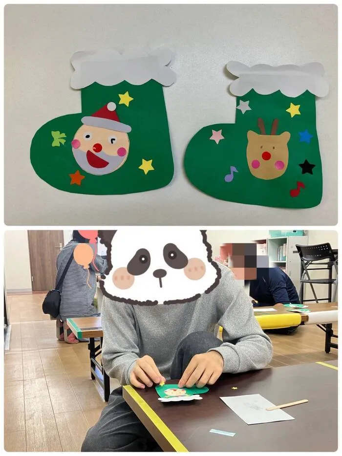 今回は少し早いですが、来月のクリスマスに向けてクリスマスブーツを画用紙で製作しました‼︎