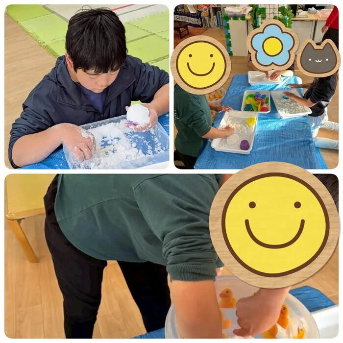 重曹とリンスを混ぜてできる「雪」に、お友達は大興奮!!!