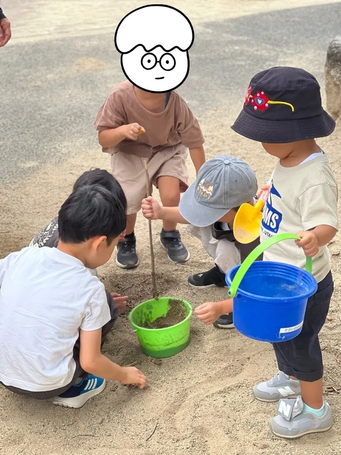 ですが、数か月の間にいつも走り回っているお友だちが砂遊び(宝探し✨)をするなど新しい遊び方が増えていました♪♪