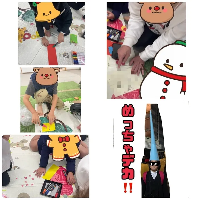 「ここもってて〜」「はいできた!かわいい〜✨」とお手伝いの声がシートのあちこちで飛び交い、まるでクリスマス前のパーティーのようににぎやかな時間に🎄🎉