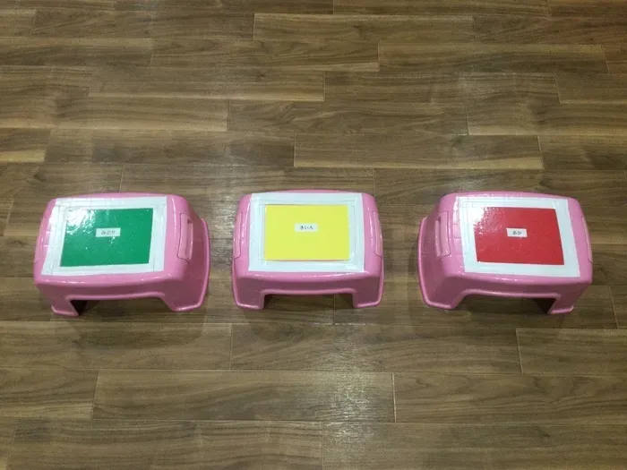 来所してすぐに自分の好きな色を選んで靴を置き