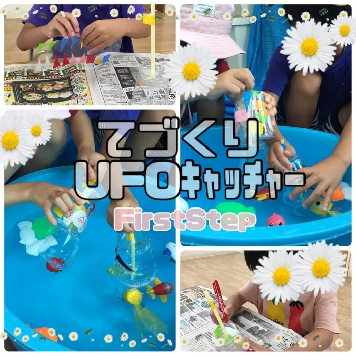 水遊びでは作ったUFOキャッチャーでお水に浮かんだおもちゃをキャッチ!