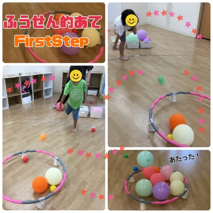 風船の的を見てボールを投げることで空間認識や方向感覚を養うことができます👀