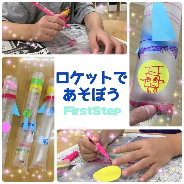 飾りをつけて自分だけのオリジナルロケットの完成です👍🌟