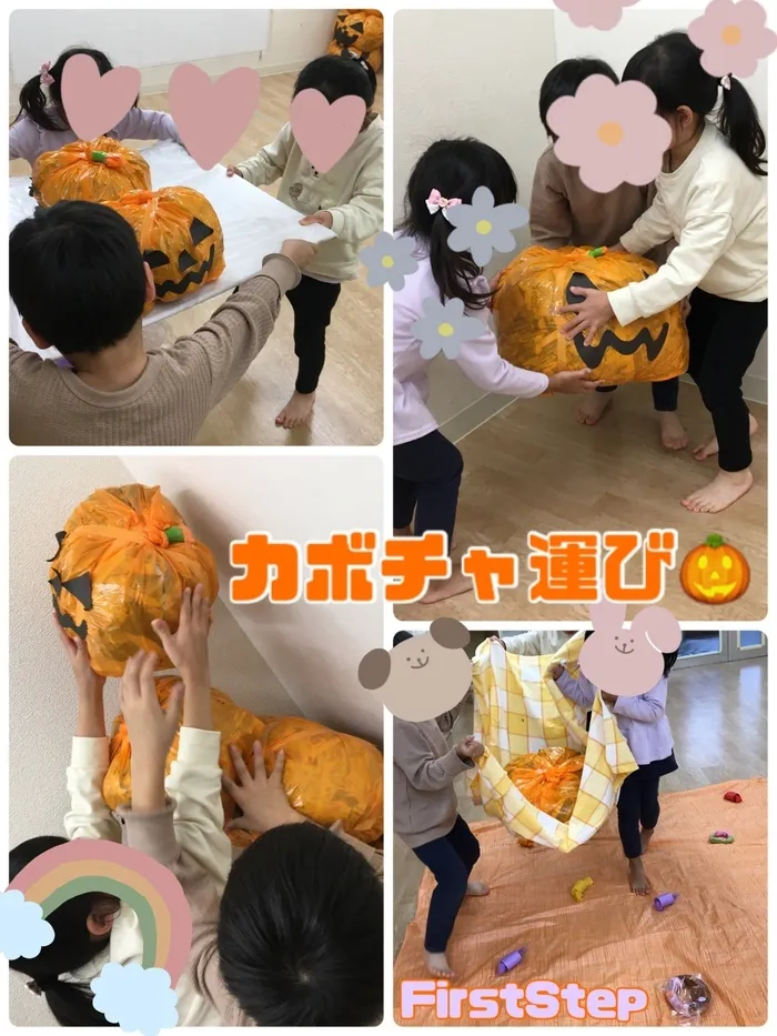 お友だちと協力して取り組む『カボチャ』運び🎃