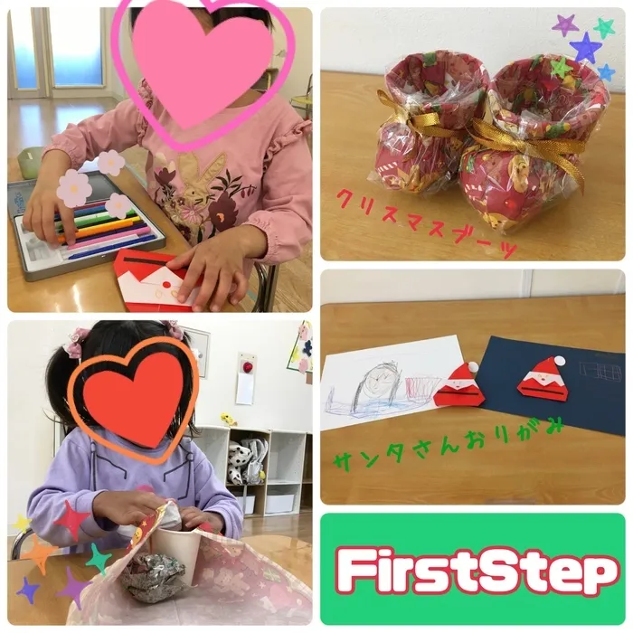 この日に遊びに来てくれたお友だちには『クリスマスブーツ』と『サンタさんのおりがみ』に挑戦してもらいました💡