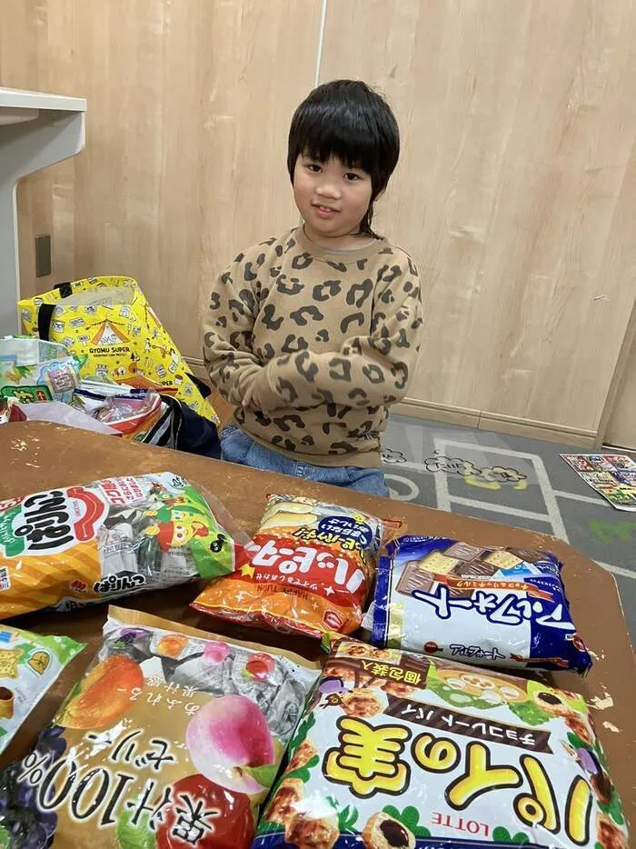 デリバリーでお買い物したおやつをみんなで食べたよ!