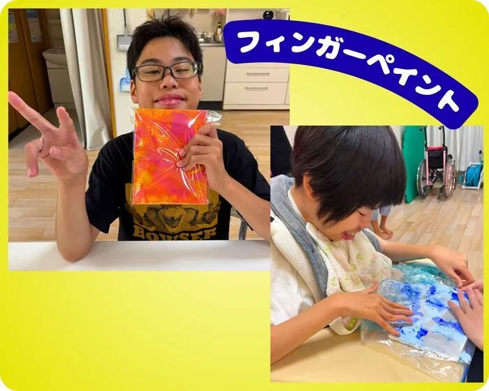 指先や手のひらを使って絵具を押したり伸ばしたりするため、感覚刺激を楽しむだけでなく、手指の巧緻性や力加減の調整にもつながります☀