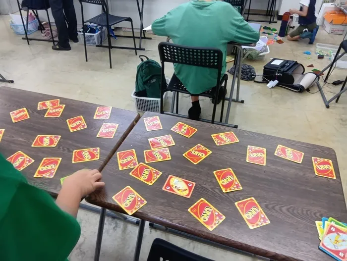 今回はUNOカードを使った神経衰弱ゲームを考案し、K先生と対戦しました。