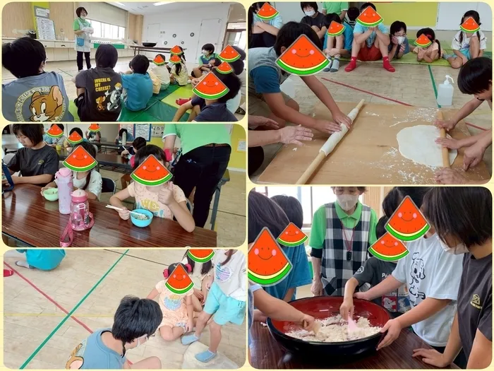 支援員の話を聞き、手洗い、消毒を行ってからうどん作りスタート💪