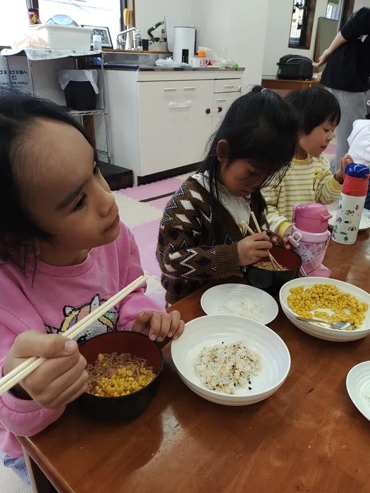 出来上がりをみんなで食べて、おいしそうに食べてました🏵️
