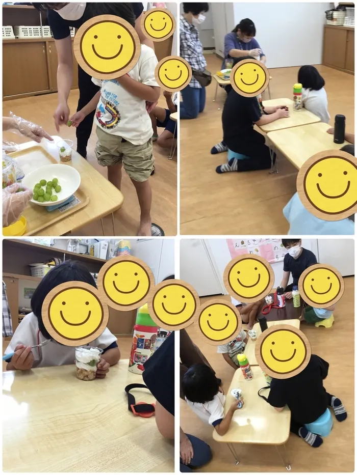 前回のぶどう狩りごっこからのパフェ作りの様子です😊