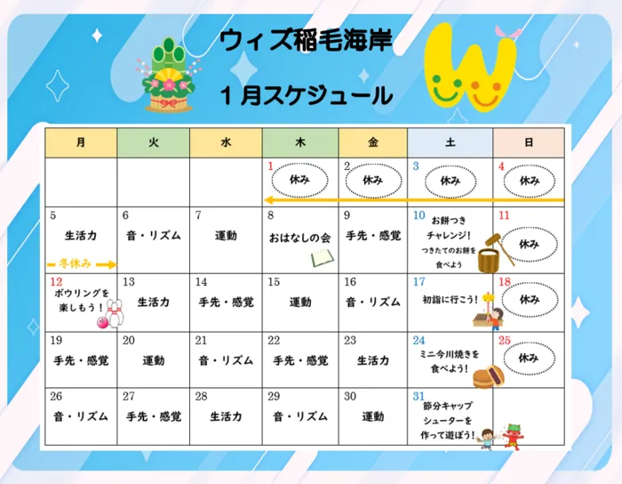 1月のスケジュールについてご紹介いたします♪