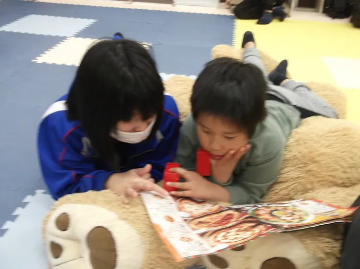 仲良くクリスマスのお料理のパンフレットを見ています☆