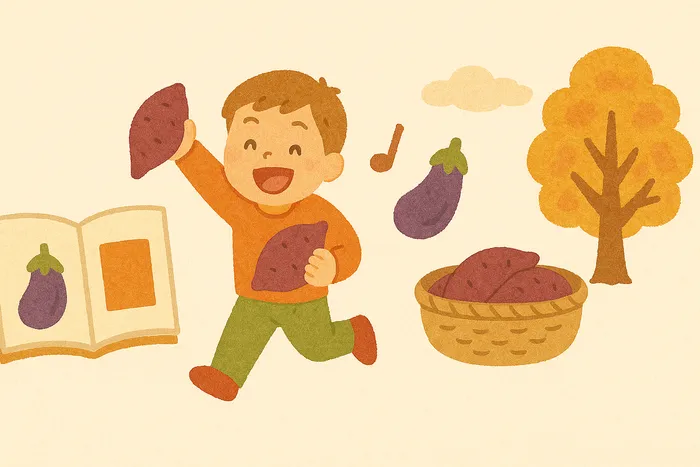 「秋のごちそうを通じて、言葉と遊びのバリエーションを広げよう!」をテーマにたくさんのやりとりと遊びを体験します。