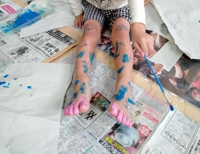 まだ描いていない場所をさがして、叩いたり、足跡をつけたり、色々な描き方で楽しむことができました。