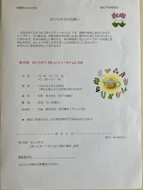 昨年から始まった保護者ボランティアの会【さくらそう】のご紹介です。