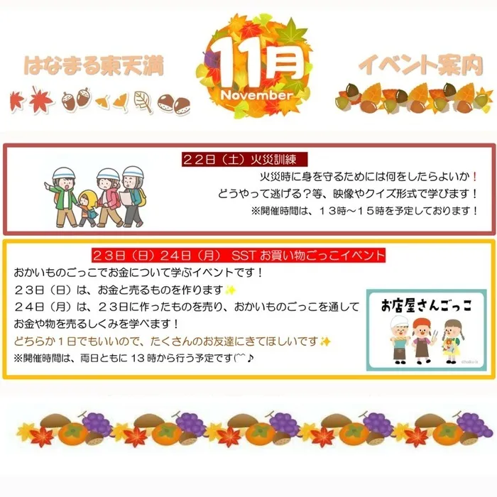 楽しみがいっぱいの秋、東天満では何をするのかな