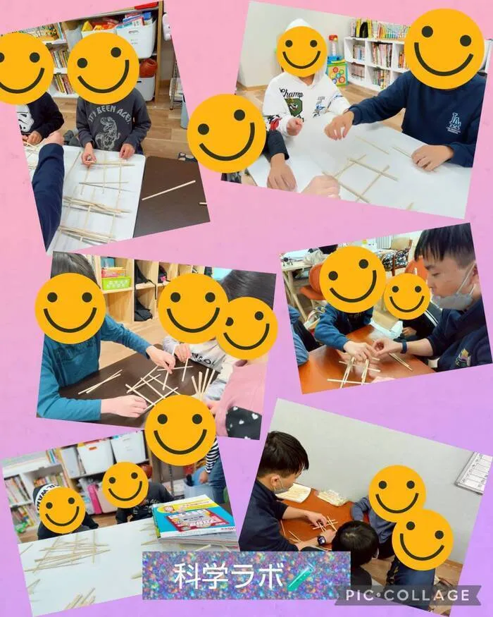 釘やボンドなどを全く使わずに交互に組み合わせて作る橋をみんなで挑戦し、職員も参加してお友だちみんなで作ってみました!みんな割り箸だけでできることに驚きを感じながらも楽しく作っていましたが、長く作ることの難しさも実感していました!