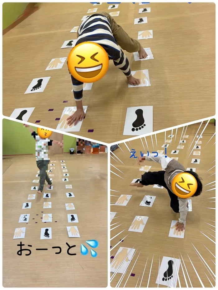 手足を決められた場所に置くことでバランスを取る力や体幹も自然と使われ、良い運動にもなりました💪