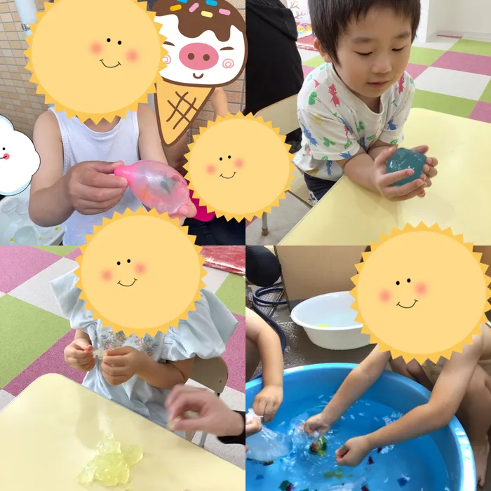 中身が出てくるのを楽しみながらお水の中で揺らしたりしながら早く中身が出てくるように工夫する姿が見られました👀✨