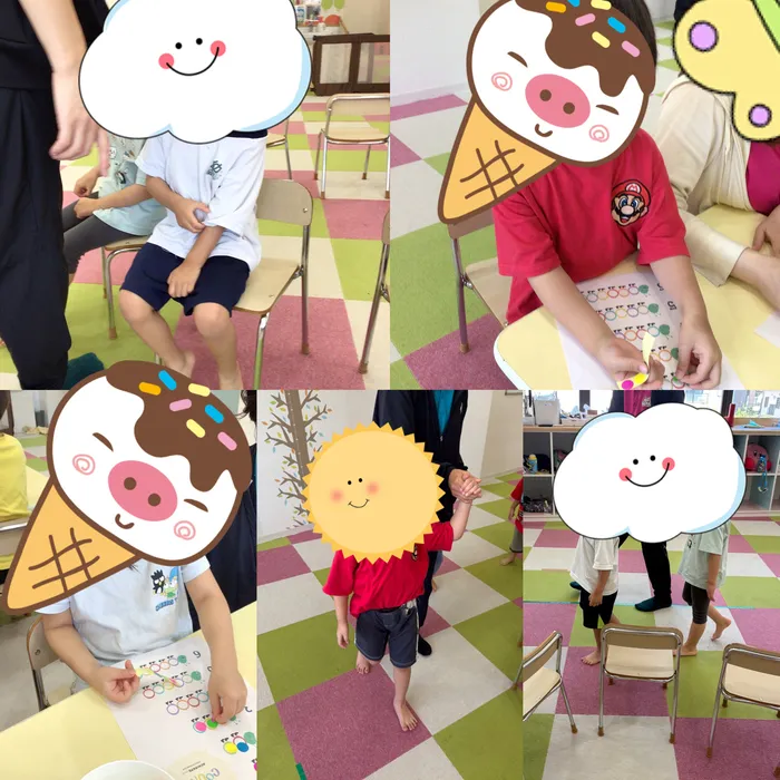 すべてのシールを貼り終わると、「終わったよ!」と元気に教えてくれる姿もあり、メリハリを持って参加することができました(^_-)-☆
