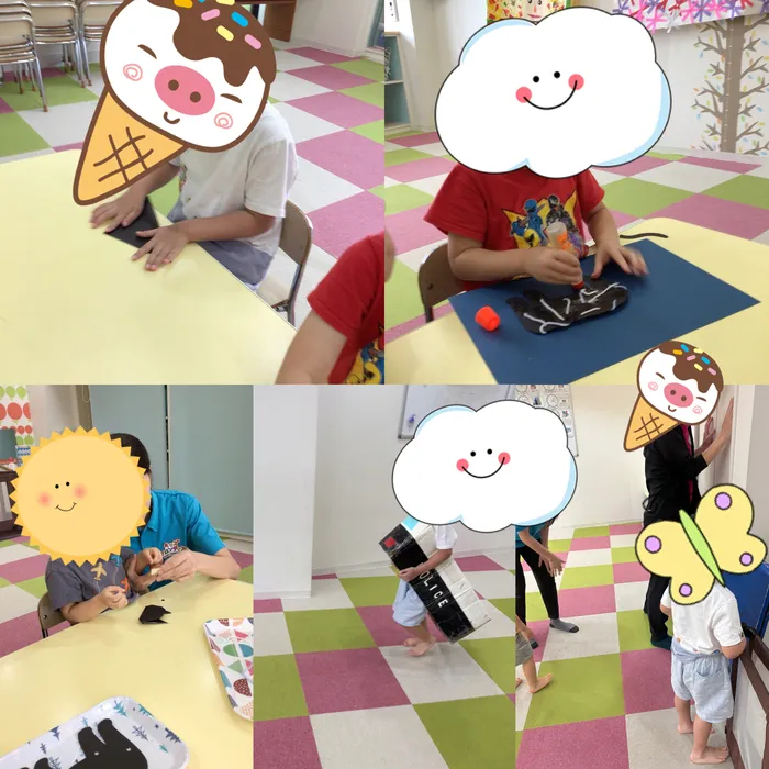 1人1人がいろんな模様を身体に描きながら、最後は顔、身体、しっぽをのりを使って貼り合わせ~♡