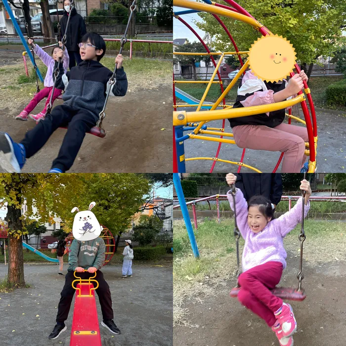 ブランコやすべり台で思い切り体を動かしたり、鬼ごっこをしたりと、笑顔がたくさん見られました✨