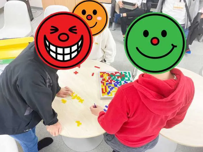 盤面に様々な形のブロックを置いていき、もっとも多くのマスを埋めることが出来た人が勝者というこのゲーム、自身の陣地を確保しつつ、相手の陣地拡大を防ぐ戦略性が求められ、キッズ達も皆1手1手慎重に進めていきます。