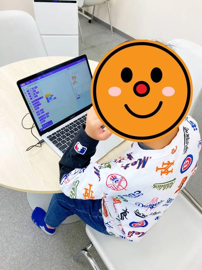 そんな本日のお写真は、スクラッチプログラミングに挑戦するキッズのお写真です。