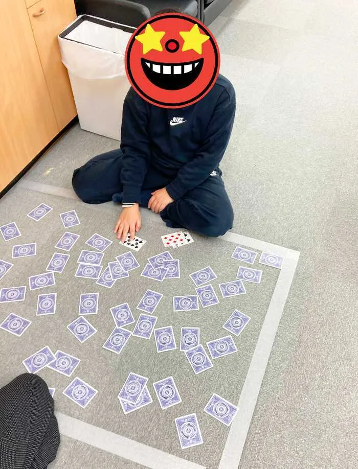そんな本日のお写真は、トランプのペア暗記に挑戦するキッズの1枚です。