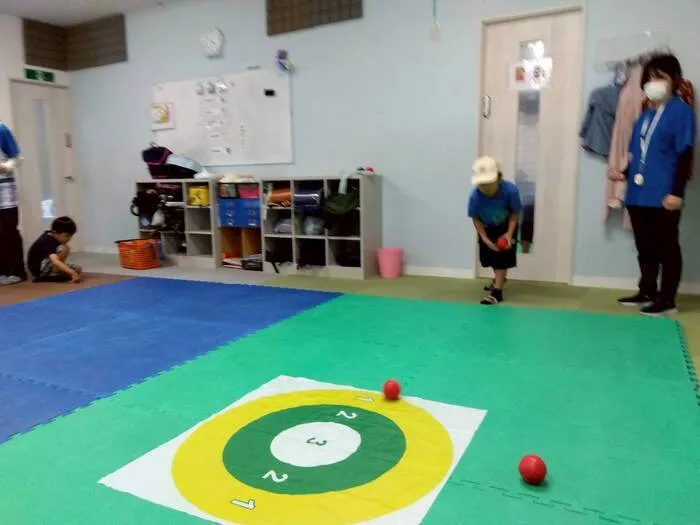 「目隠しボッチャ」という新しいレクにチャレンジしました。