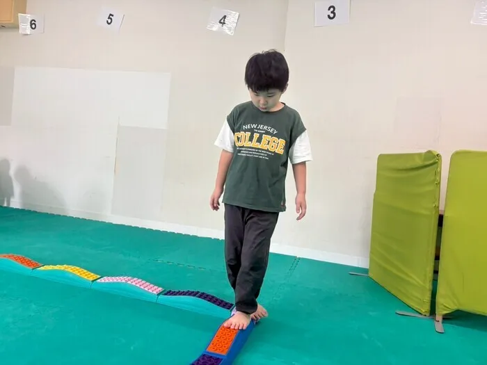 そんな中訓練室①では凸凹平均台を使用した感覚遊びを行いました、凸凹が気になる児童や少し高い場所にいる感覚等色々な感覚があったかな?そんな児童たちの姿をどうぞ!