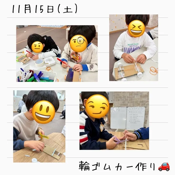 11月15日(土)は「輪ゴムカー作り」のイベントでした🚗