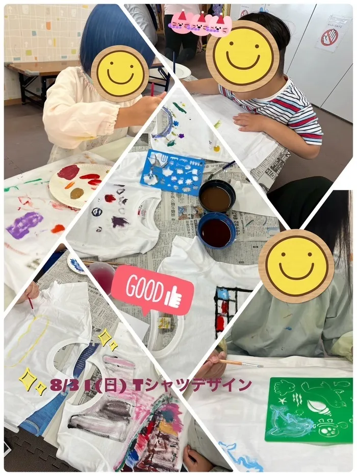 真っ白なTシャツに布絵の具でイラストや模様を描きます😚