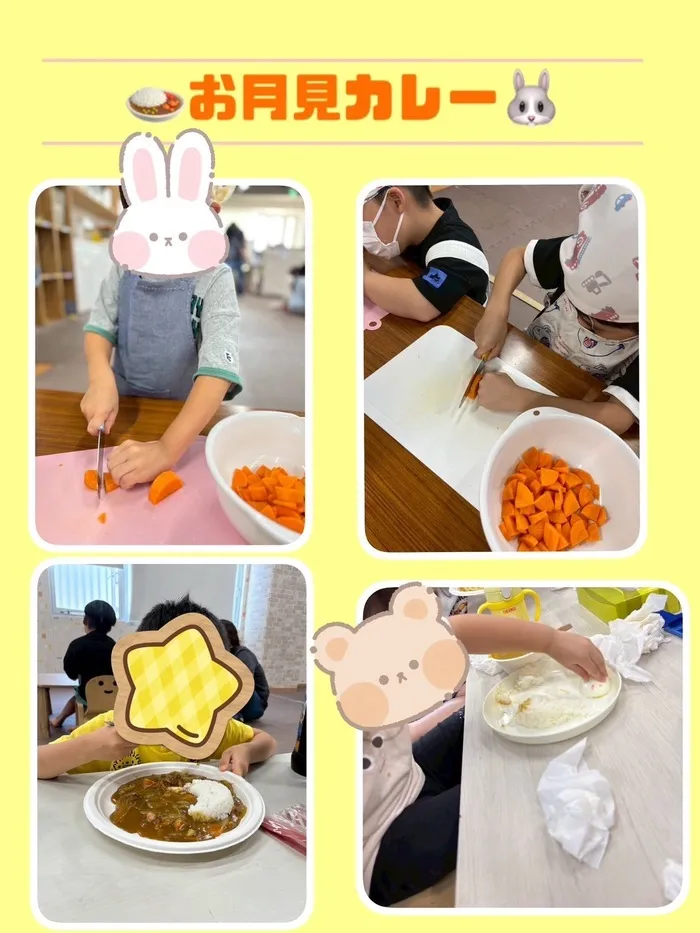 自分たちで作ったカレーはとっても美味しかったようで、おかわりの声もたくさんでてきましたよ😋お月見カレーで秋を感じました🍁🐰