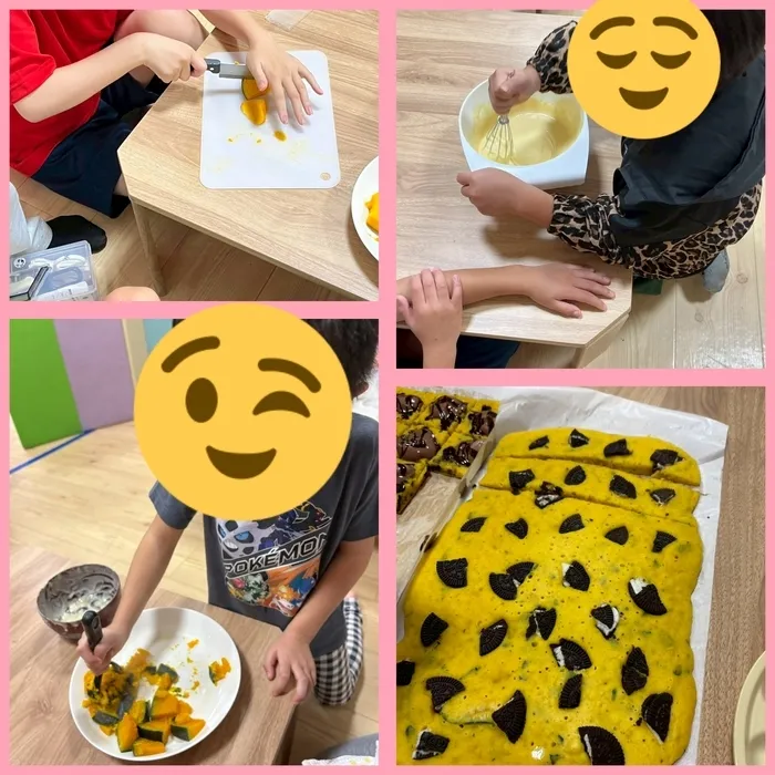 今回のおやつクッキングは秋らしくかぼちゃケーキを作りました🎃