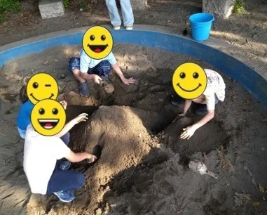 「これから、鉱山労働します!」と元気に砂を堀り始めました💪
